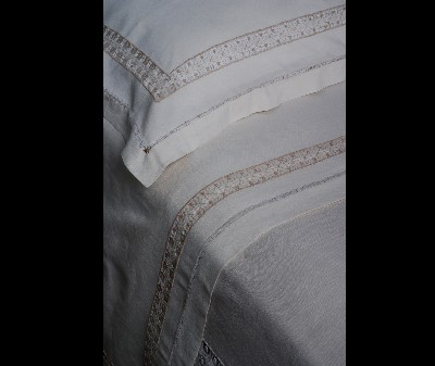 Disponibile su ordinazione, singolo e matrimoniale, in avorio con sfilato di colore ecru o in grigio con sfilato bianco.