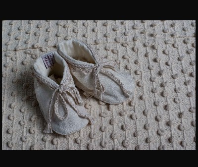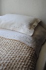 Copertina in coccio. La lavorazione di questo tessuto pregiato è data dall'alternarsi di piccoli "cocci", ottenuti rialzando, ad intervalli regolari, il filo di ordito più spesso, durante la tessitura.