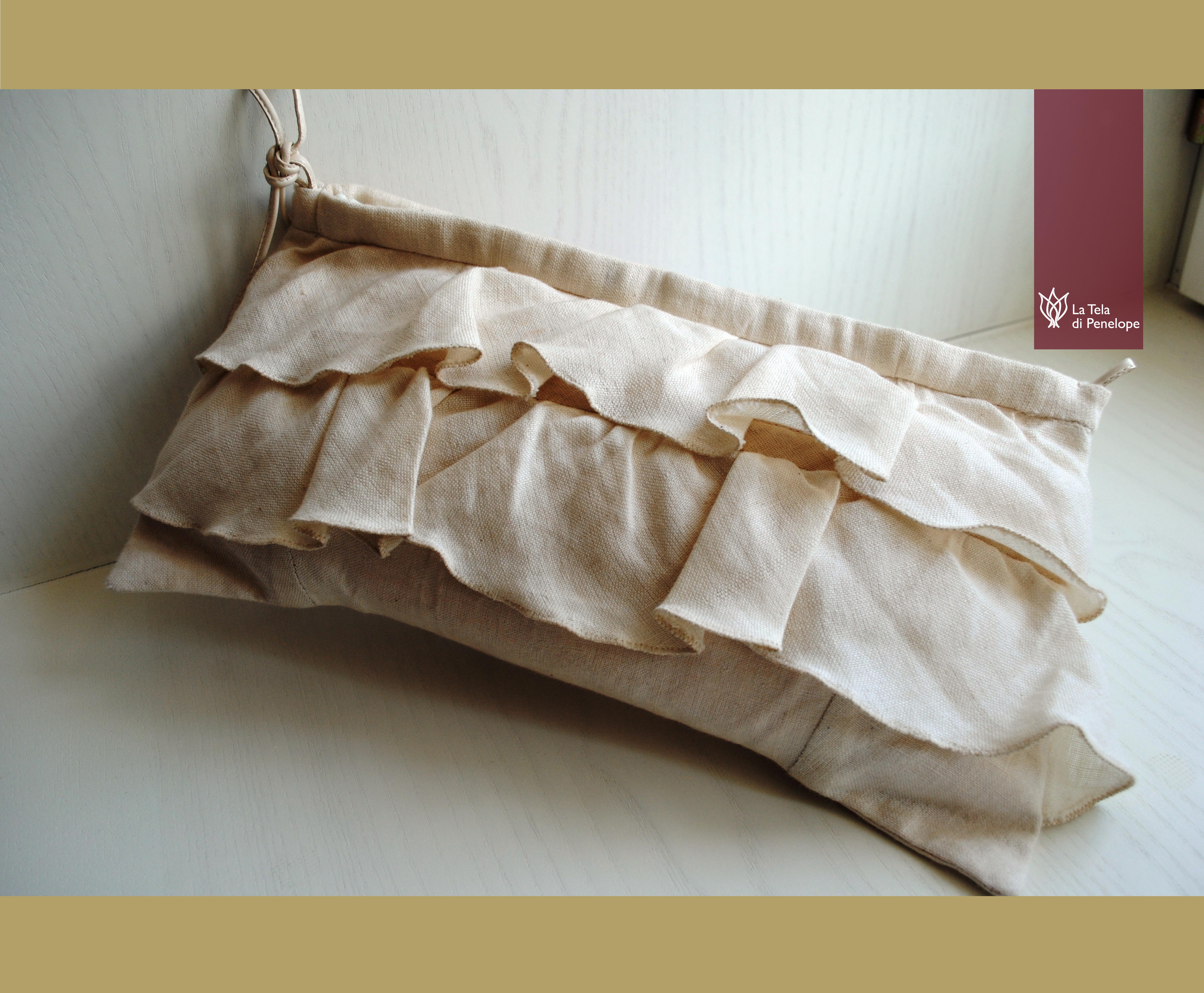 Borsa in Tela di Lino tessuta e realizzata a mano.